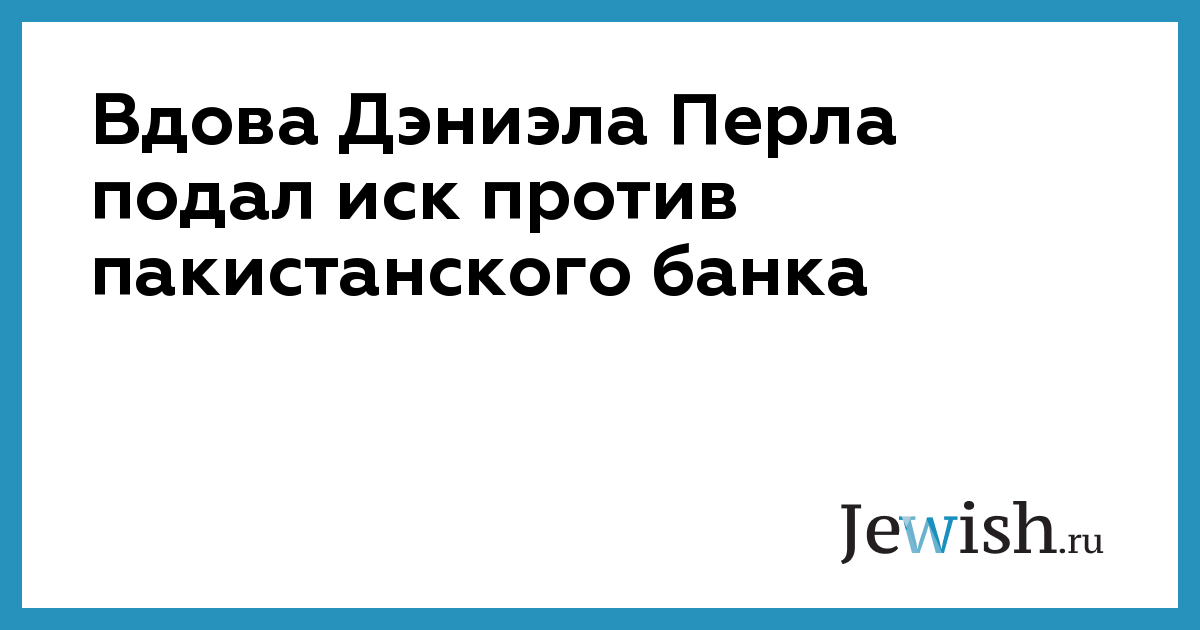 Вдова американского журналиста Дэниэла Перла подала иск против крупнейшего в Пакистане банка. По мнению женщины, этот банк был непосредственно связан с террористами, похитившими и обезглавившими ее мужа в 2002 году.