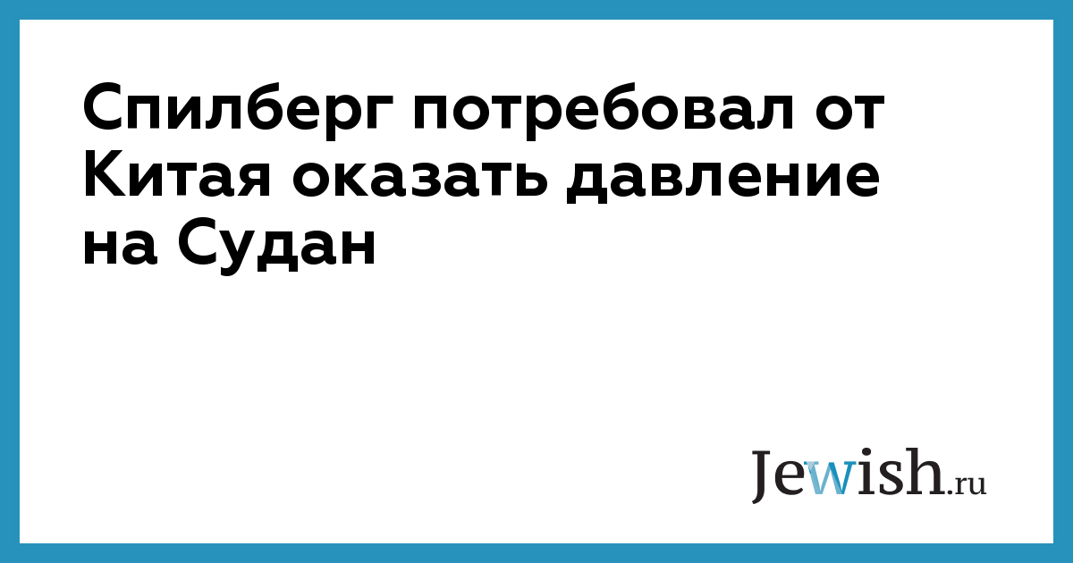 Стивен Спилберг написал открытое письмо президенту Китая Ху Цзиньтао и призвал его оказать давление на руководство Судана, чтобы оно изменило политику в Дарфуре, пишет "Газета по-украински".