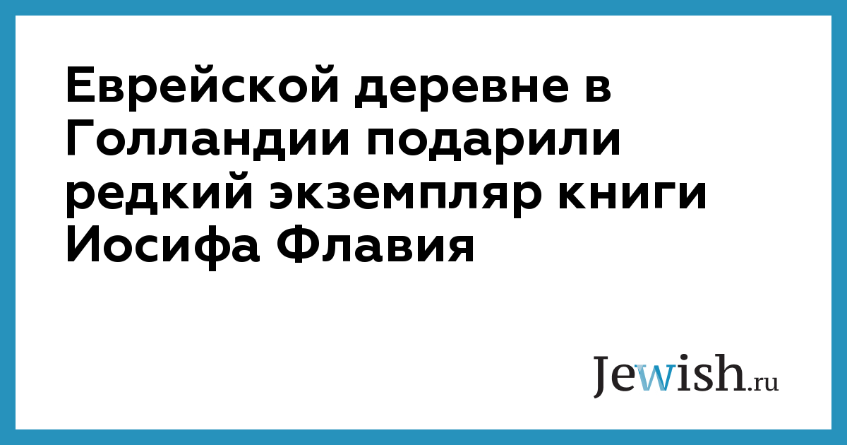 Еврейской деревне в Голландии подарили редкий экземпляр книги Иосифа Флавия