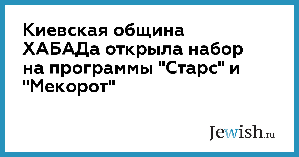 Киевская община ХАБАДа открыла набор на программы "Старс" и "Мекорот"