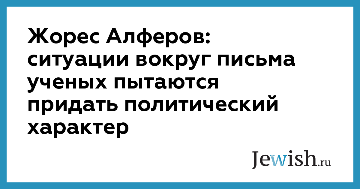 Нобелевский лауреат Жорес Алферов, один из авторов недавнего письма академиков РАН, в котором Церковь обвиняется в клерикализации общества, заявил, что ситуации вокруг этого обращения пытаются придать политический характер. Об этом сообщает "Интерфакс".