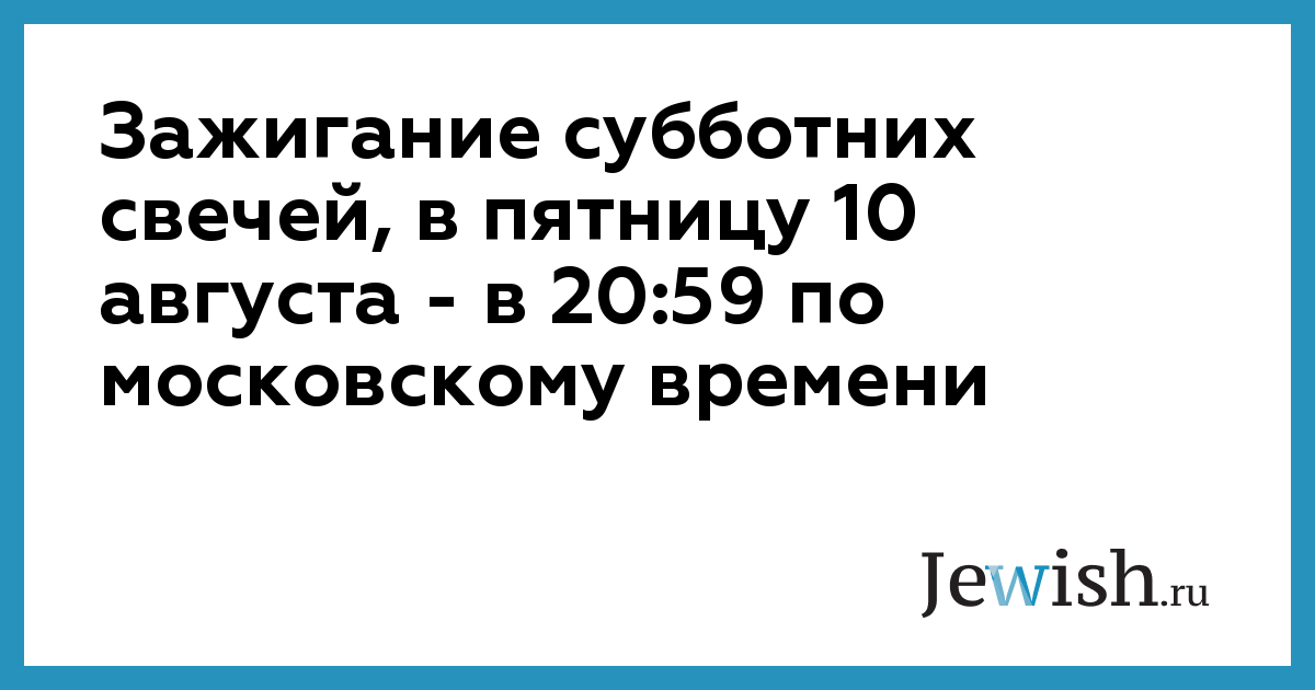 Зажигание субботних свечей, в пятницу 10 августа — в 20:59 по московскому времени