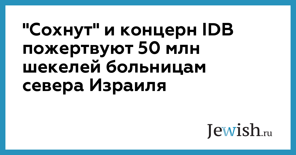 "Сохнут" и концерн IDB пожертвуют 50 млн шекелей больницам севера Израиля