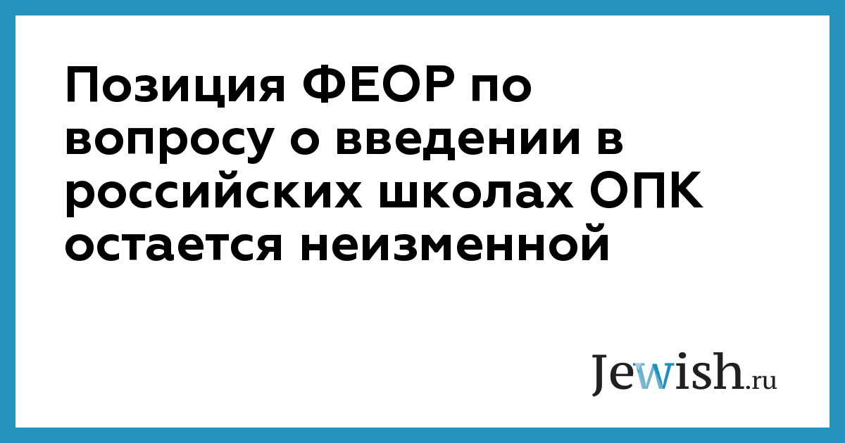 В Федерации еврейских общин России (ФЕОР) выражают уверенность, что предмет «Основы православной культуры» («ОПК») в российских школах вводиться не будет. У еврейской общины позиция относительно введения этого предмета в школах остается неизменной, сообщил ИА «Новый Регион» пресс-секретарь Федерации еврейских общин Тимур Киреев.