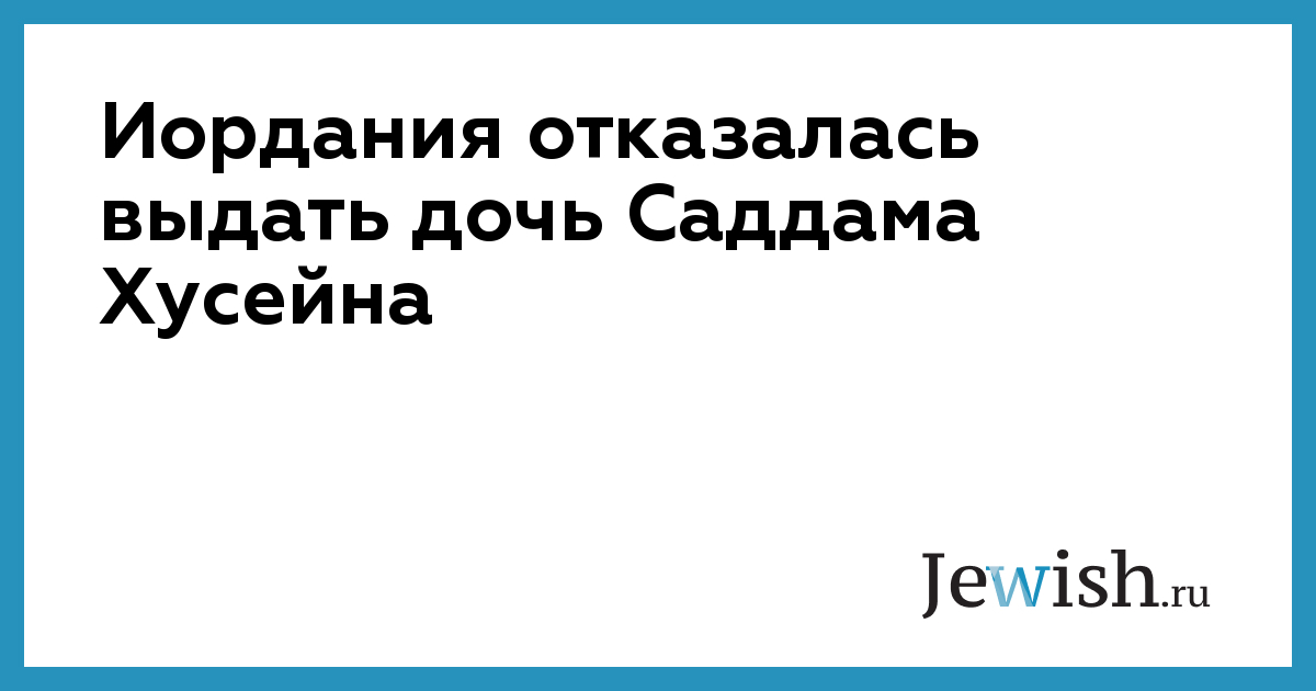 Власти Иордании полностью исключили возможность выдачи третьей стороне старшей дочери Саддама Хусейна, 38-летней Рагад Хусейн, находящейся в стране, передает агентство AFP.