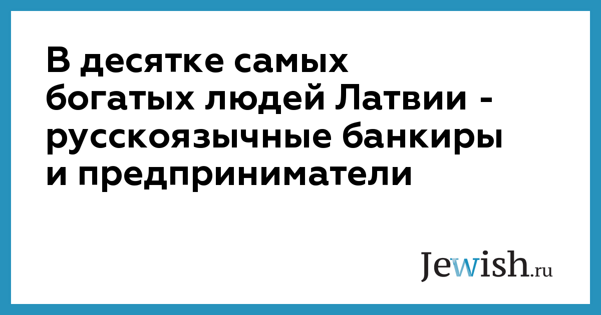 Таким образом, в десятку самых богатых людей Латвии входят шестеро русскоязычных банкиров. Если же говорить о сотне самых богатых людей балтийской республики, то по меньшей мере 40% из них — представители местной русскоязычной общины, отмечает ИТАР-ТАСС.