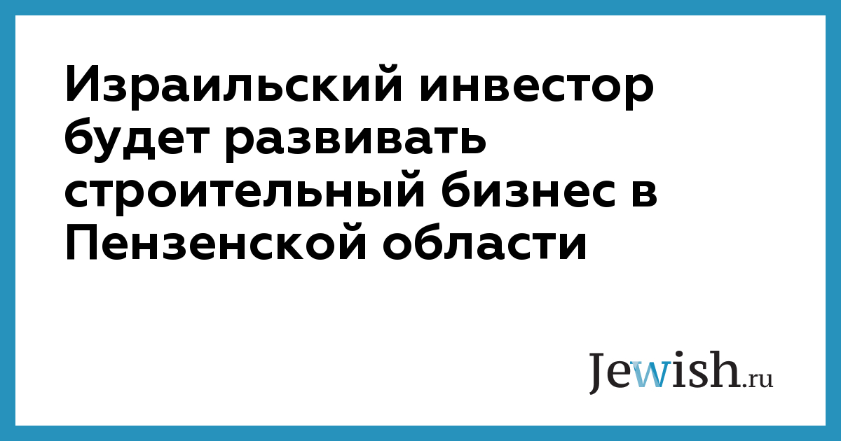 Израильский инвестор будет развивать строительный бизнес в Пензенской области