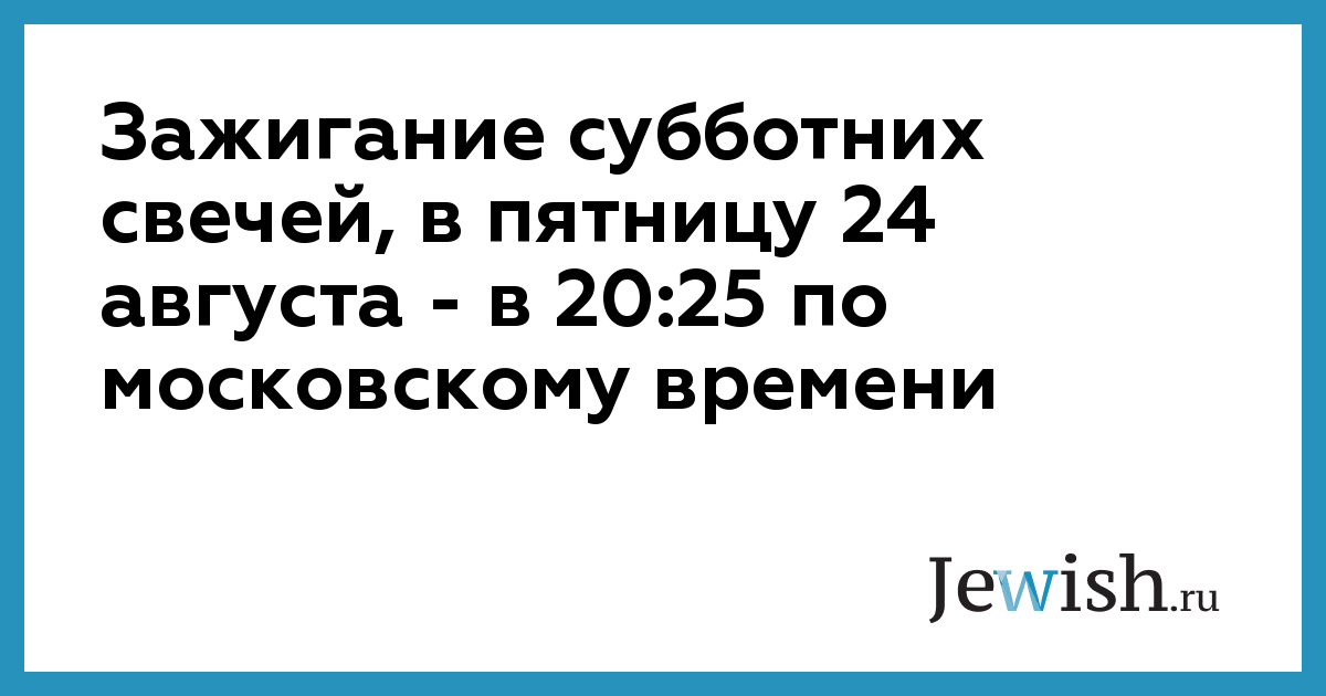 Зажигание субботних свечей, в пятницу 24 августа — в 20:25 по московскому времени