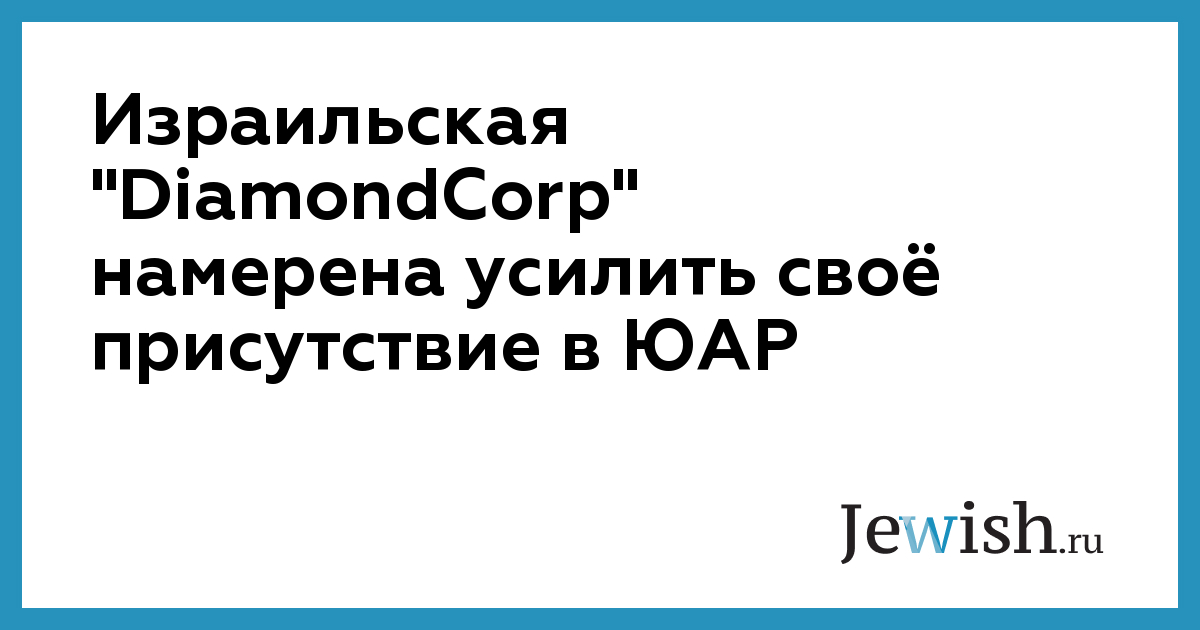 Израильская "DiamondCorp" намерена усилить своё присутствие в ЮАР