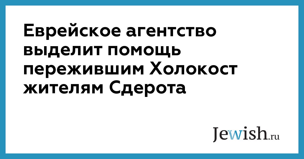 Еврейское агентство выделит помощь пережившим Холокост жителям Сдерота