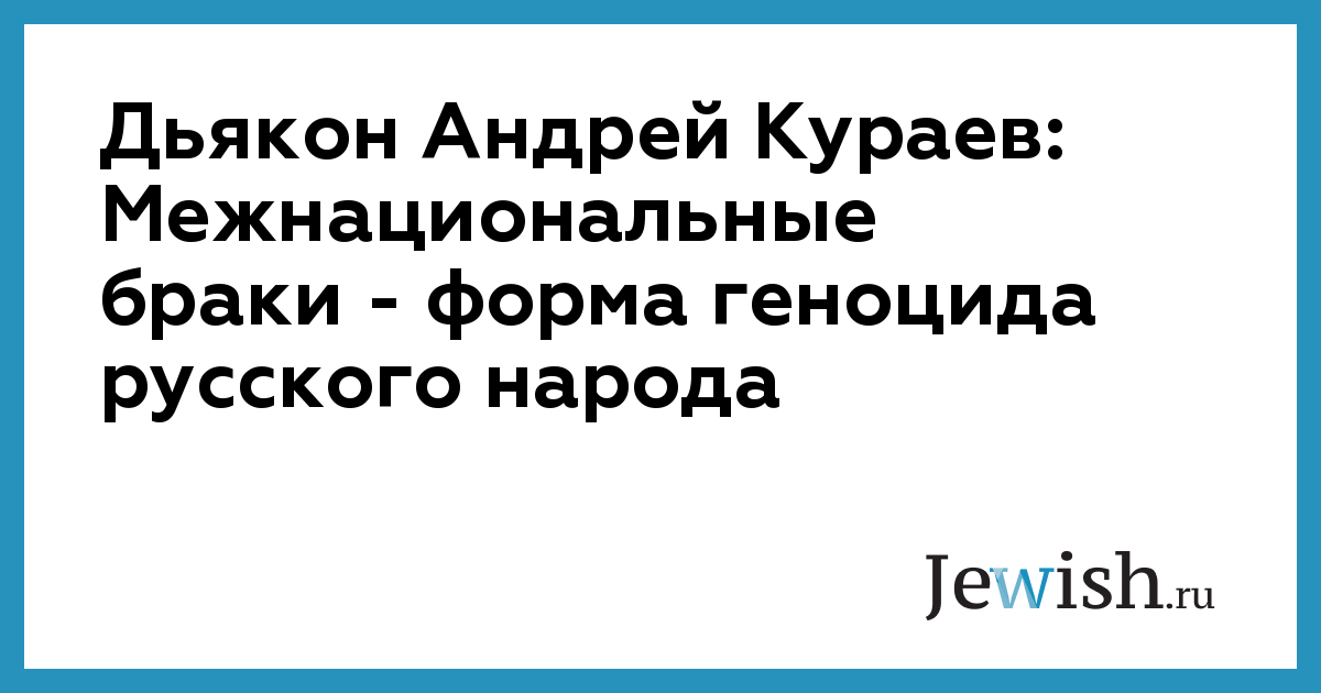 Профессор Московской духовной академии диакон Андрей Кураев выразил обеспокоенность по поводу распространения в России менжациональных браков. "На самом деле межнациональные браки — это форма геноцида русского народа! Когда наши женщины выходят замуж за кавказцев, они обогащают своими генами другие народы. А русская нация слабеет!" — заявил отец Андрей. По его словам, в семье русской женщины и дагестанца дети "будут дагестанцами и, более того, мусульманами".