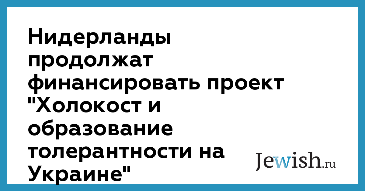 Нидерланды продолжат финансировать проект "Холокост и образование толерантности на Украине"