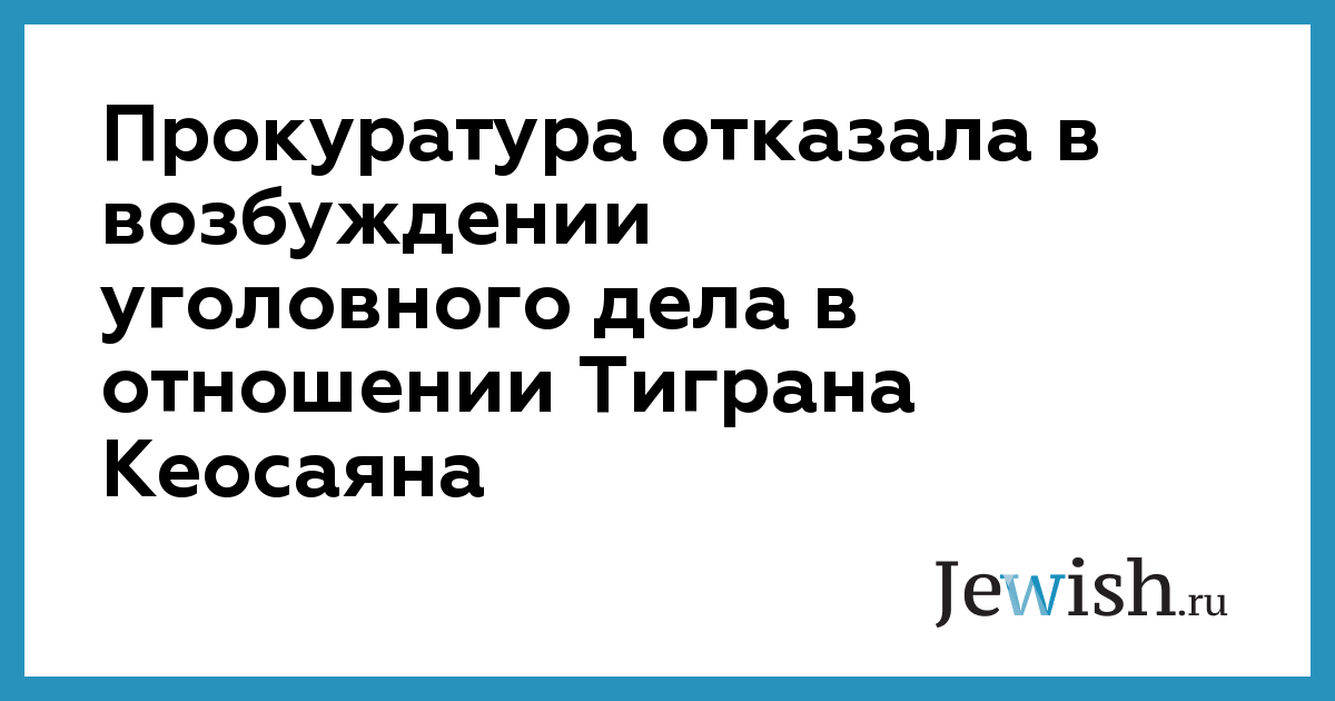 Прокуратура Центрального административного округа Москвы отказала в возбуждении уголовного дела в отношении режиссера Тиграна Кеосаяна по признакам разжигания межнациональной вражды.