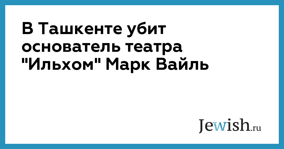 Ночью в подъезде своего дома был убит основатель и руководитель ташкентского театра «Ильхом» Марк Вайль. Об этом "Эху Москвы" сообщил ассистент Вайля Максим Тюменев.