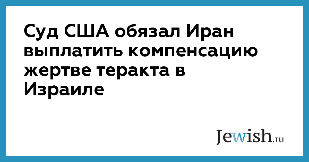 Американский суд обязал правительство Ирана выплатить компенсацию в размере 13 млн долларов родителям гражданки США из Сан-Диего Мирлы Бенет, студентки Еврейского университета в Иерусалиме, погибшей в результате теракта пять лет назад.