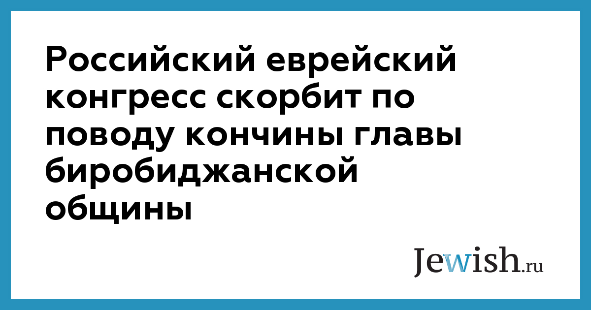 Российский еврейский конгресс скорбит по поводу кончины главы биробиджанской общины