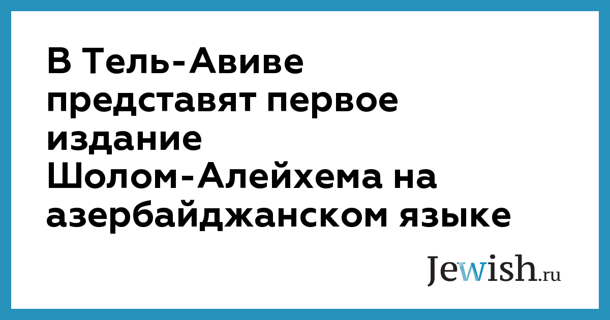 11 октября в тель-авивском научно-культурном центре "Бейт-Шолом-Алейхем" (ул. Беркович, 4) состоится презентация первого перевода произведений Шолом-Алейхема на азербайджанский язык. В программе вечера — выступления специалистов по творчеству великого еврейского писателя, художественная часть и фуршет.