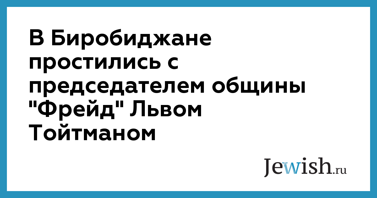 12 сентября Биробиджан простился с Почетным гражданином Еврейской автономной области, председателем еврейской религиозной общины "Фрейд" Львом Григорьевичем Тойтманом, пишет газета "Биробиджанер штерн".