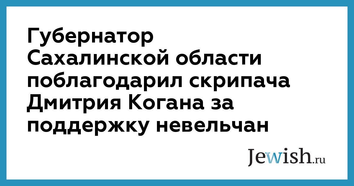 Губернатор Сахалинской области поблагодарил скрипача Дмитрия Когана за поддержку невельчан