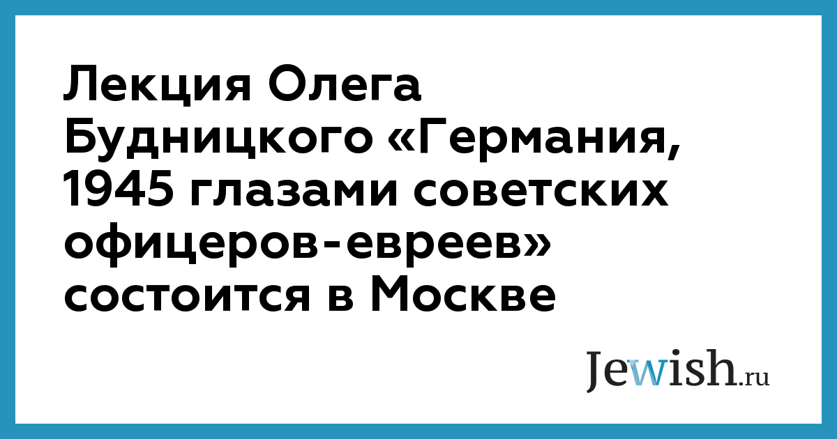 Лекцию на тему «Германия, 1945 глазами советских офицеров-евреев» проведет О.В. Будницкий.