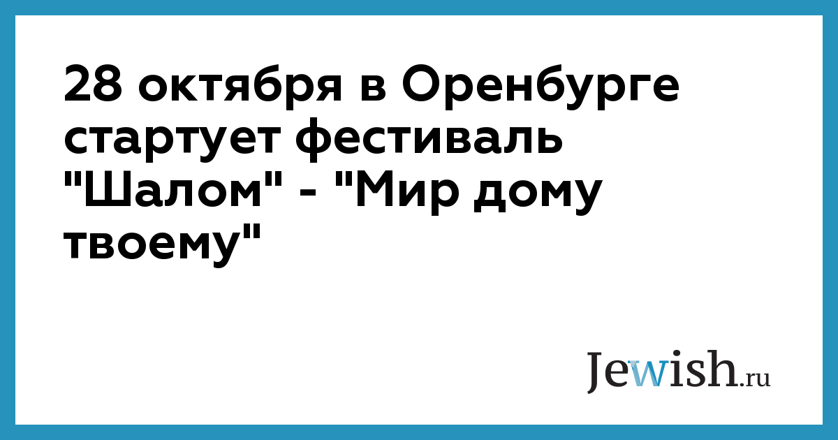 28 октября в Оренбурге стартует фестиваль "Шалом" — "Мир дому твоему"