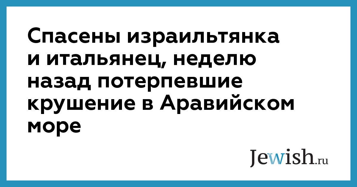 Спасены израильтянка и итальянец, неделю назад потерпевшие крушение в Аравийском море
