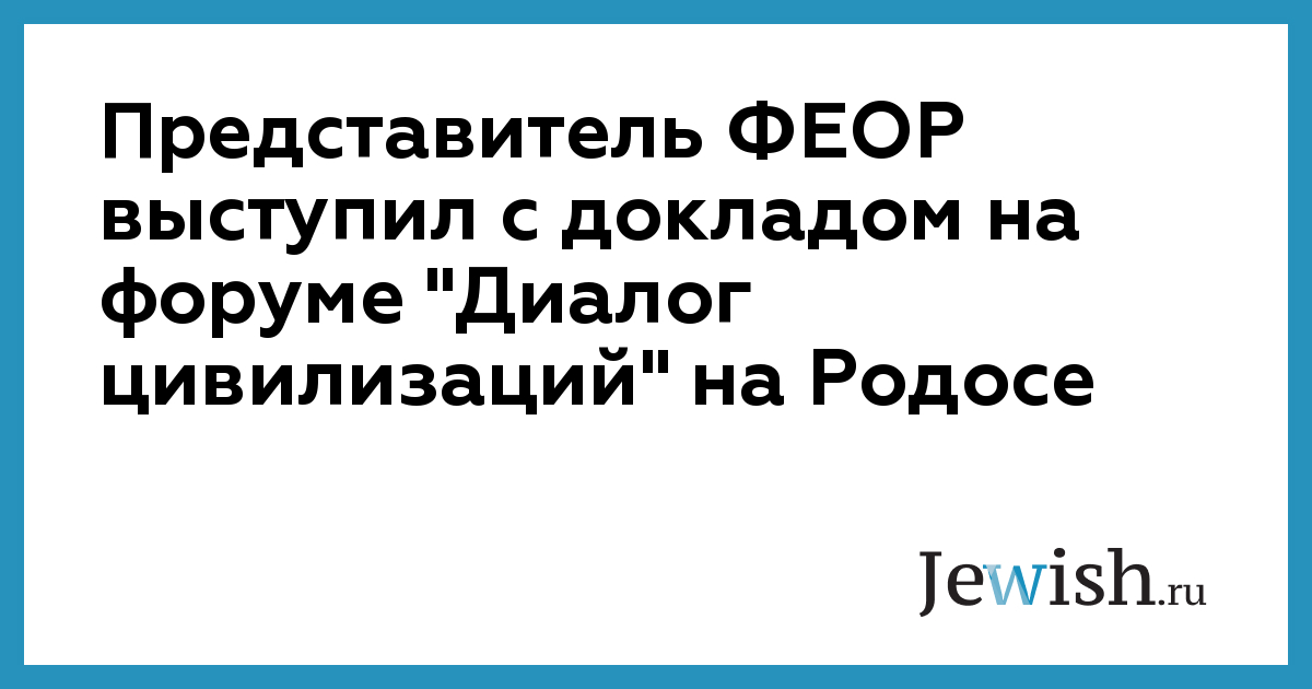 Представитель ФЕОР выступил с докладом на форуме "Диалог цивилизаций" на Родосе