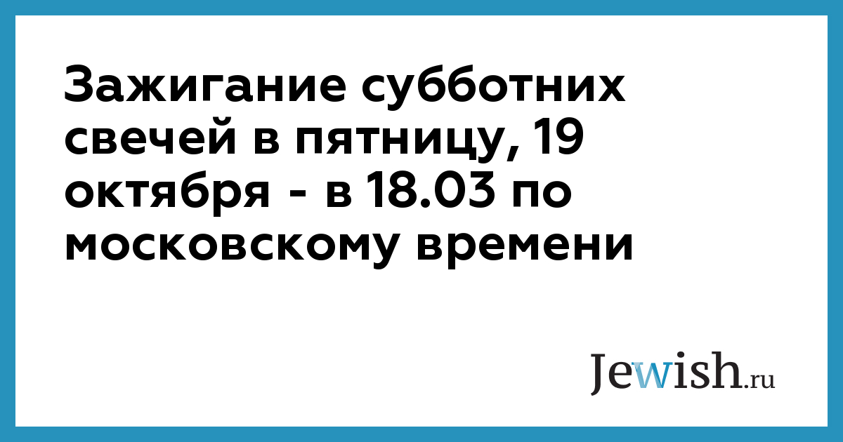Зажигание субботних свечей в пятницу, 19 октября — в 18.03 по московскому времени