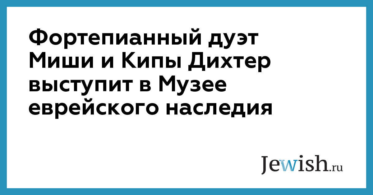 Фортепианный дуэт Миши и Кипы Дихтер выступит в Музее еврейского наследия