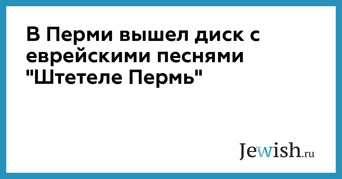 В еврейской общине Перми вышел диск с еврейскими песнями и мелодиями "Штетеле Пермь", сообщает АЕН.