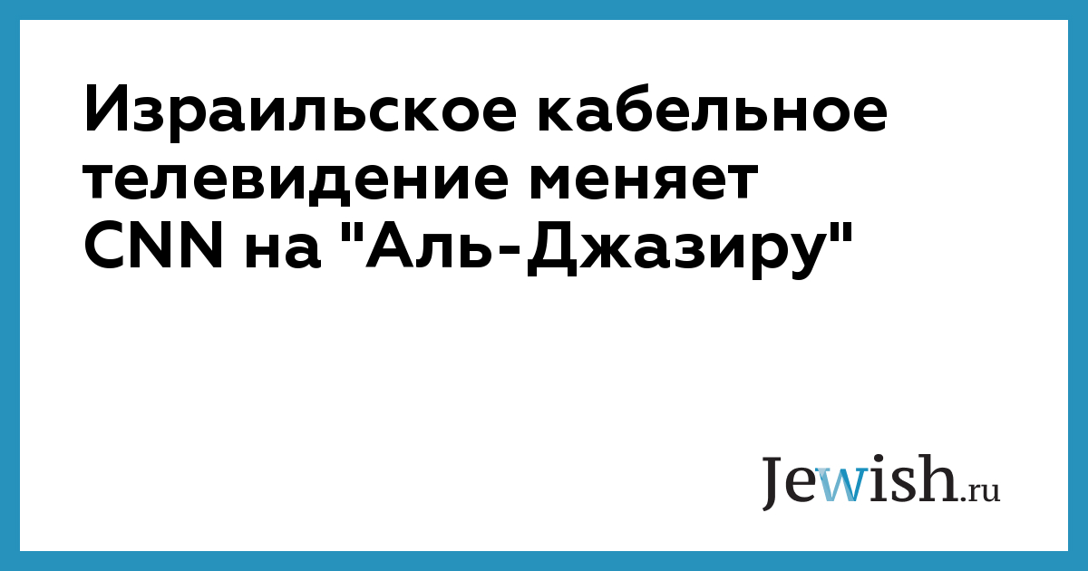 Крупнейшая в Израиле сеть кабельного телевидения HOT Television больше не будет транслировать программы телеканала CNN и заменит их англоязычной версией катрского телеканала "Аль-Джазира", пишет The Jerusalem Post.