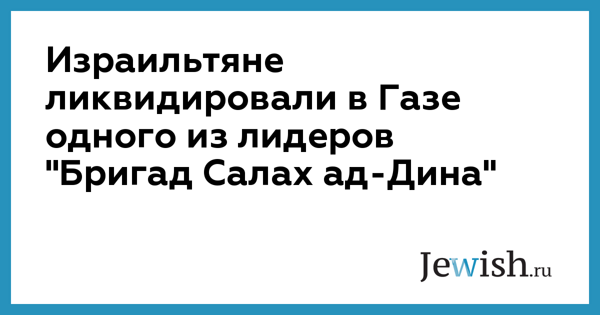 Израильтяне ликвидировали в Газе одного из лидеров "Бригад Салах ад-Дина"