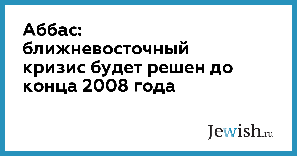 Ближневосточный кризис будет решен до конца 2008 года, уверен председатель Палестинской автономии Махмуд Аббас, сообщает Associated Press.