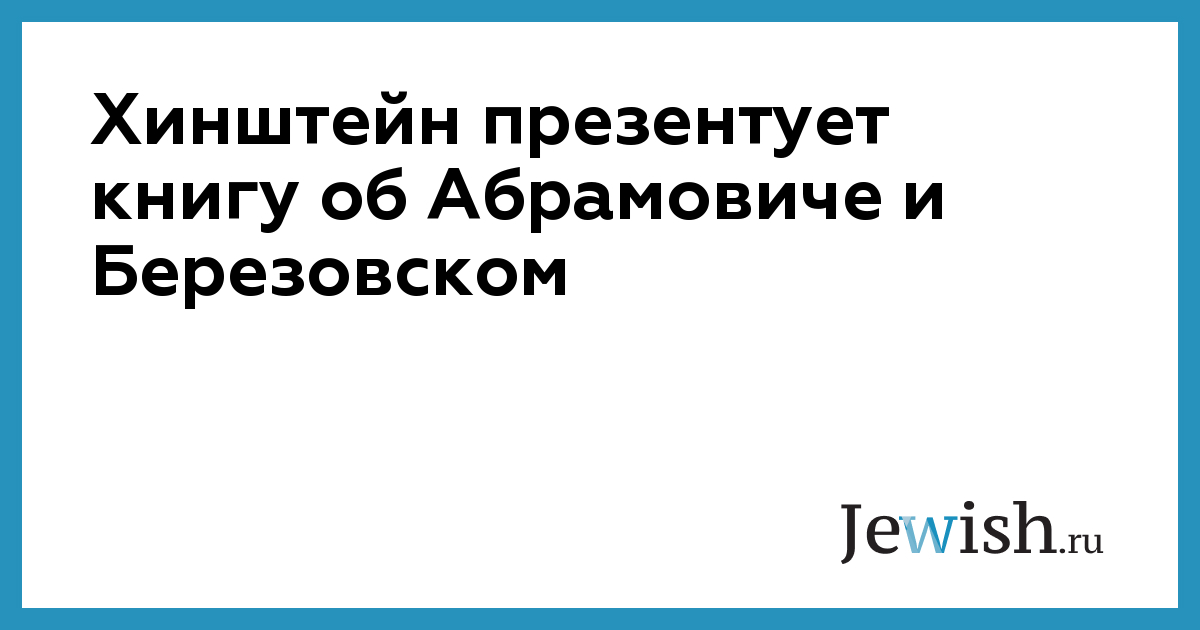 Хинштейн презентует книгу об Абрамовиче и Березовском
