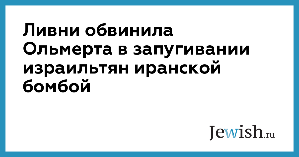 Ливни обвинила Ольмерта в запугивании израильтян иранской бомбой