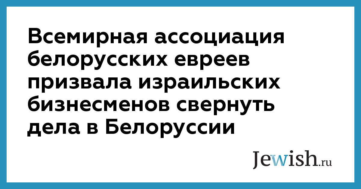 Всемирная ассоциация белорусских евреев призвала израильских бизнесменов свернуть дела в Белоруссии