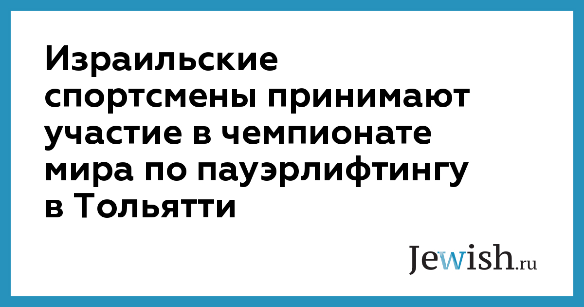 С 29 октября по 4 ноября в Тольятти проходит чемпионат мира по пауэрлифтингу в рамках федерации WPC. В этих международных соревнованиях принимают участие спортсмены из Израиля: Фаина Хариф, Анна Маркус, Игорь Барский, Вячеслав Пороцкий.