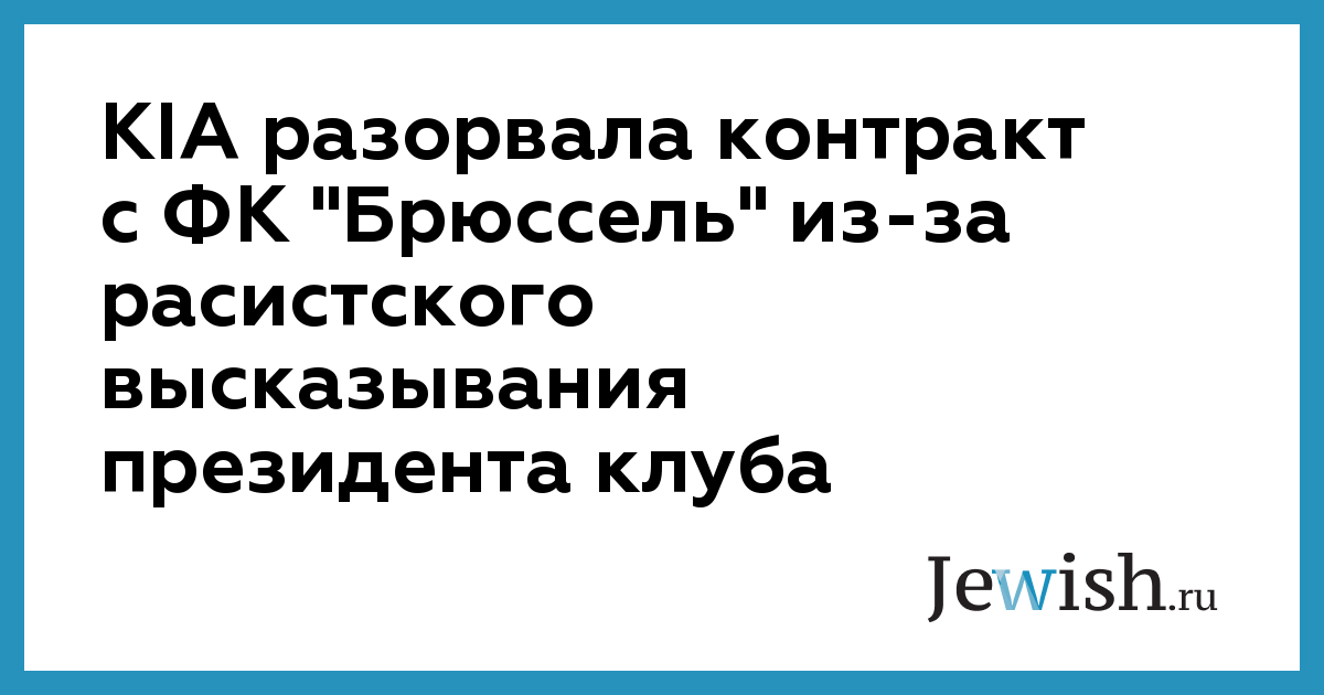 Корейский автопроизводитель KIA Motors разорвал спонсорский контракт с бельгийским футбольным клубом «Брюссель». Как сообщает Reuters, к такому решению в KIA Motors пришли после расистских высказываний президента ФК «Брюссель» в адрес одного из африканских футболистов команды.