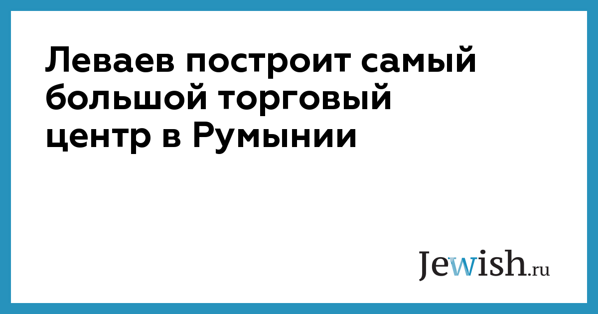Холдинг "Африка-Исраэль", находящийся под контролем израильского предпринимателя Льва Леваева, приобрел торговый центр, который после достройки станет самым большим в Румынии. Сумма сделки составила 78 миллионов евро, сообщает "Курсор".