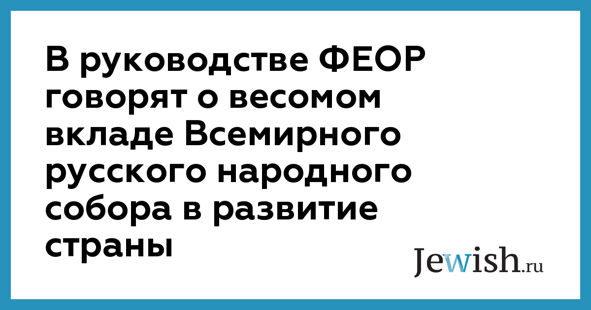 В руководстве ФЕОР говорят о весомом вкладе Всемирного русского народного собора в развитие страны