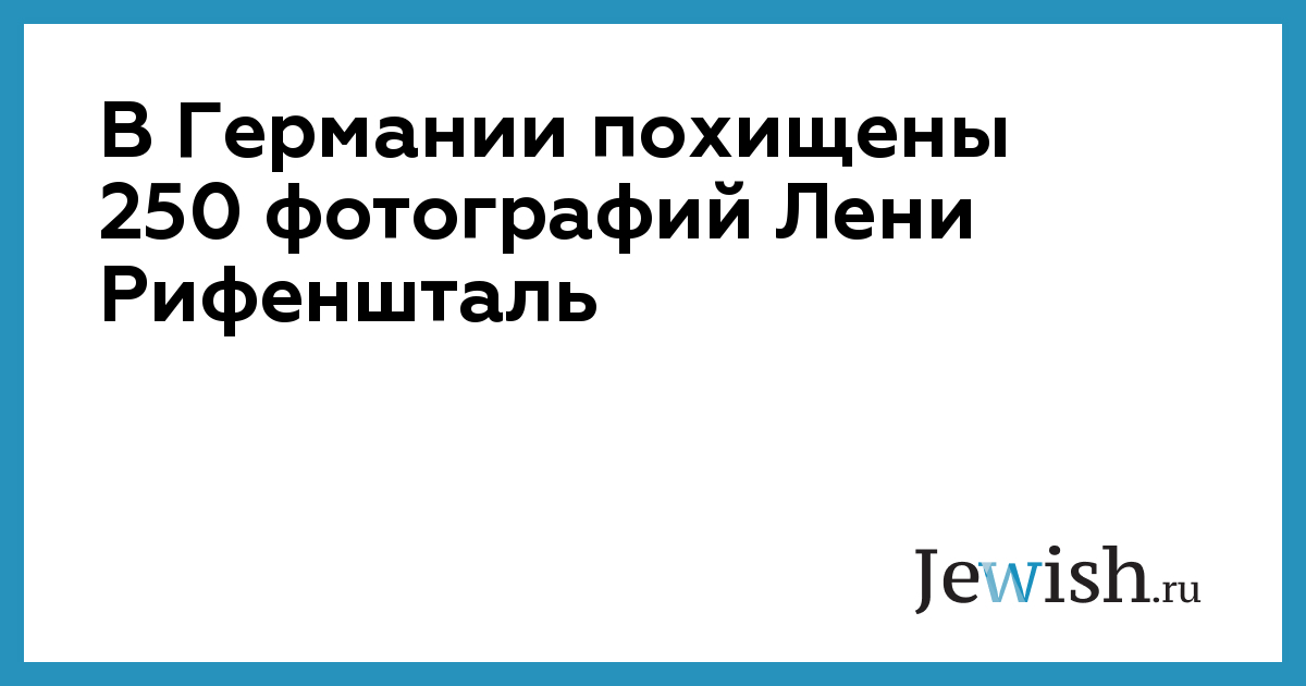 В Германии похищены 250 фотографий, сделанных известным кинорежиссером Лени Рифеншталь. Они исчезли из специального хранилища берлинской галереи, сообщили в полиции. Примерная стоимость похищенного составляет около 4 млн евро, сообщает Reuters.