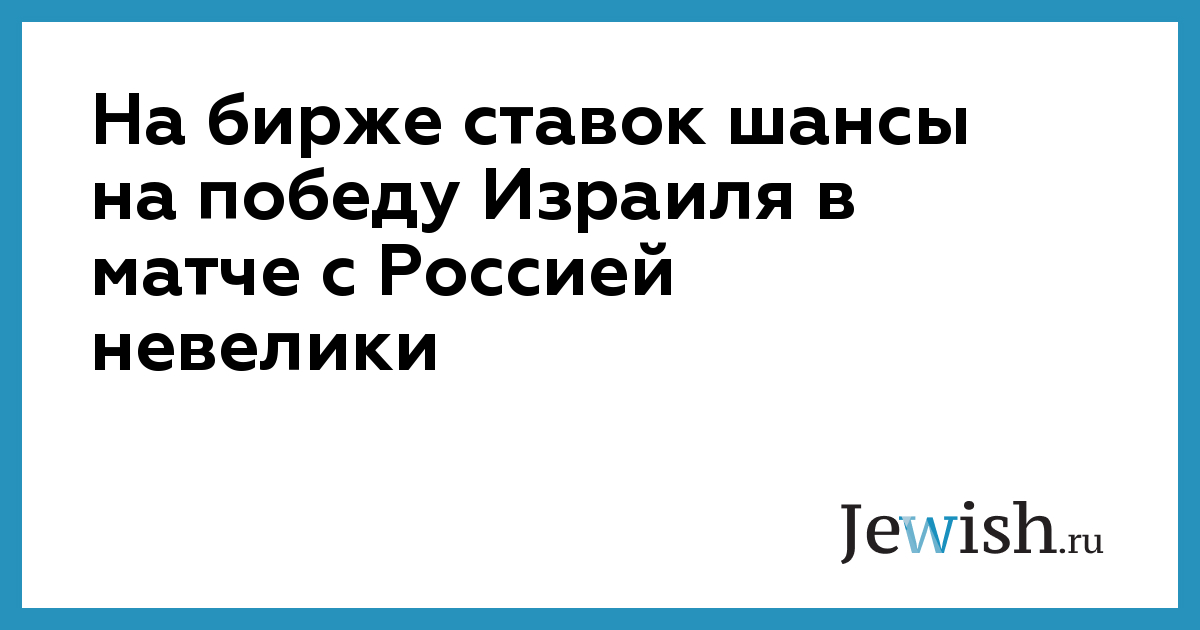 Шансы на победу РОССИИ — 64%, шансы на ничью — 24%, шансы на победу Израиля — 12%. Сделать ставку на данный матч можно на бирже ставок "BetFair".