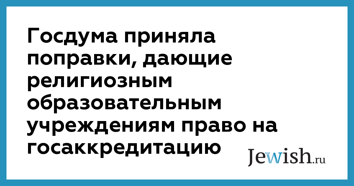Государственная Дума приняла в первом чтении поправки в действующее законодательство, наделяющие религиозные образовательные учреждения правом на получение государственной аккредитации, не устанавливая при этом государственный статус данного учреждения, сообщает "Интерфакс".