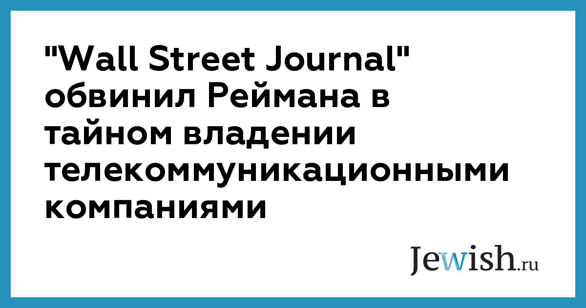 "Wall Street Journal" обвинил Реймана в тайном владении телекоммуникационными компаниями
