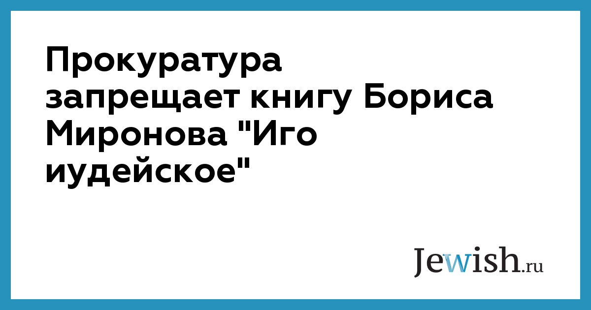 Прокуратура запрещает книгу Бориса Миронова "Иго иудейское"