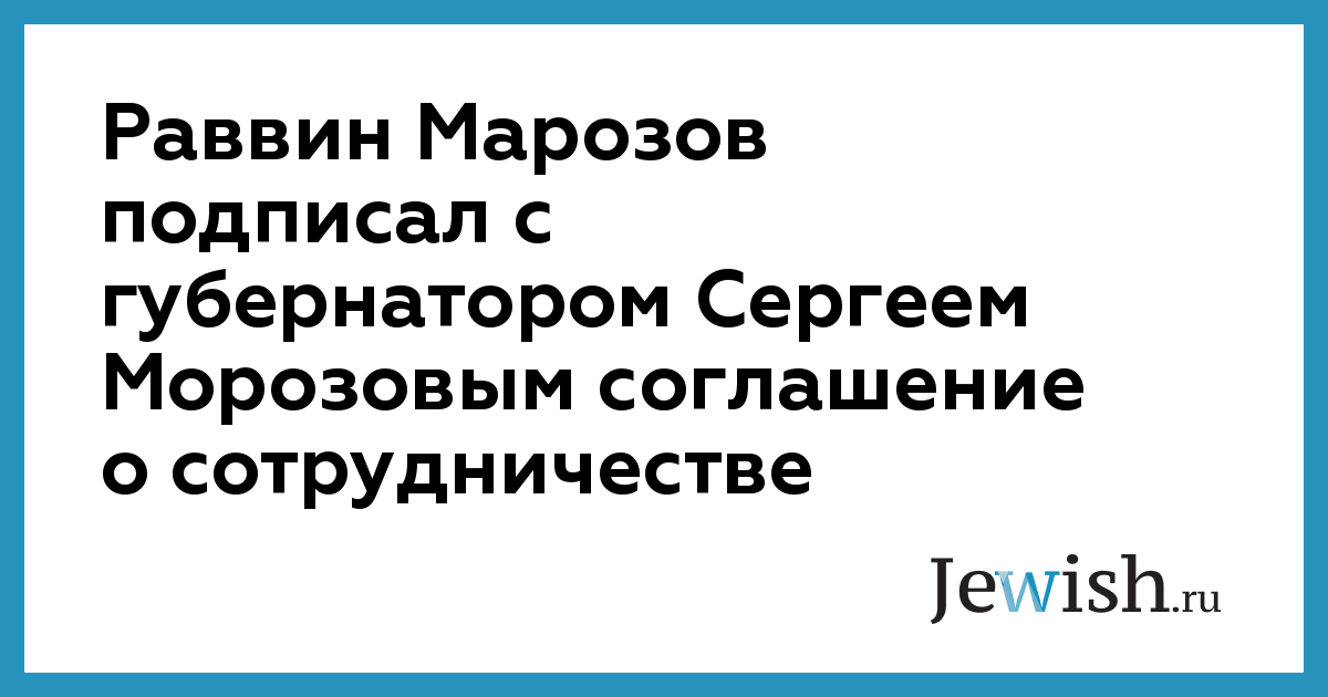 Раввин Марозов подписал с губернатором Сергеем Морозовым соглашение о сотрудничестве