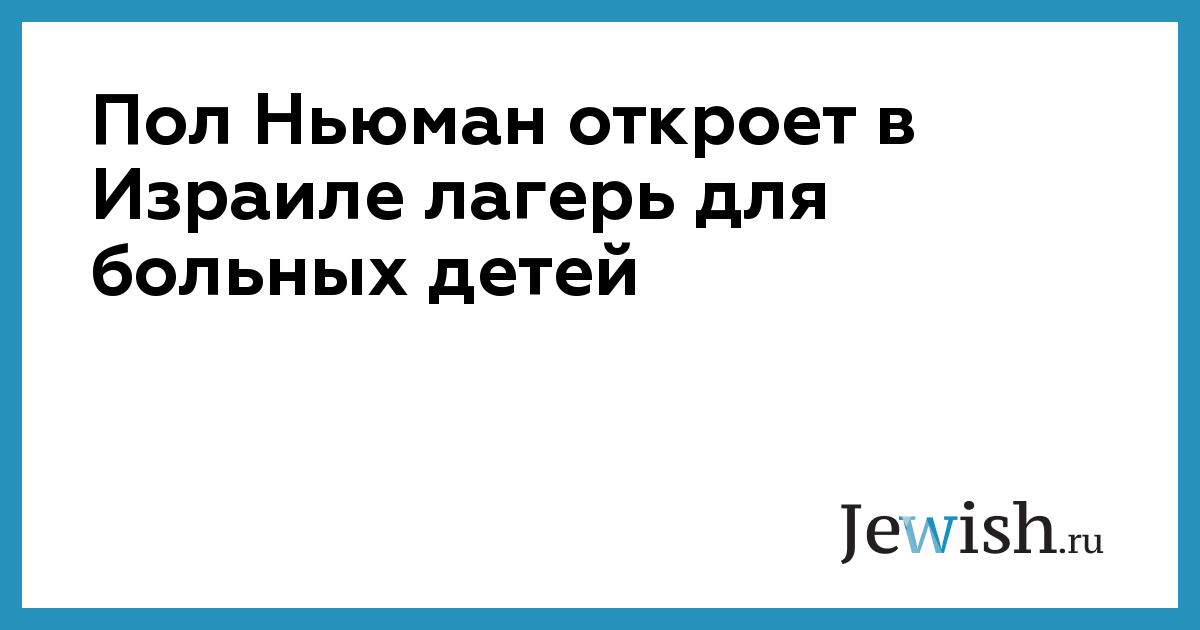 Пол Ньюман открыл один из своих лагерей для больных детей в Израиле. Лагерь «Деревня на реке Иордан» станет последним в сети лагерей, которую актер и филантроп основал в 1988 году. Этот лагерь откроется в октябре будущего года, объявил нью-йоркский фандрейзер 12 ноября, передает JTA.