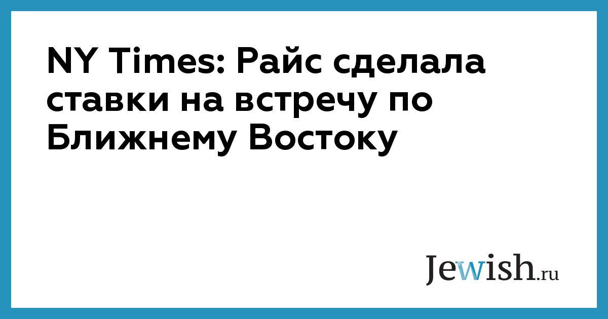 NY Times: Райс сделала ставки на встречу по Ближнему Востоку