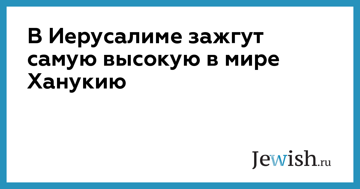 В Иерусалиме зажгут самую высокую в мире Ханукию