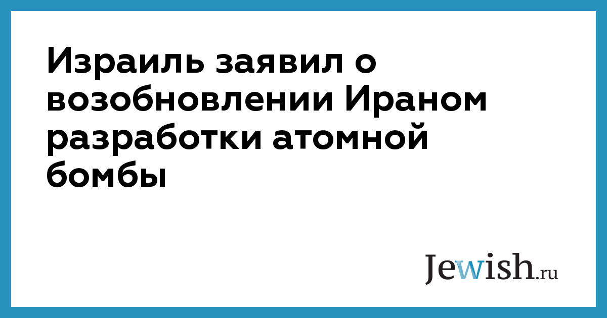 Израиль заявил о возобновлении Ираном разработки атомной бомбы